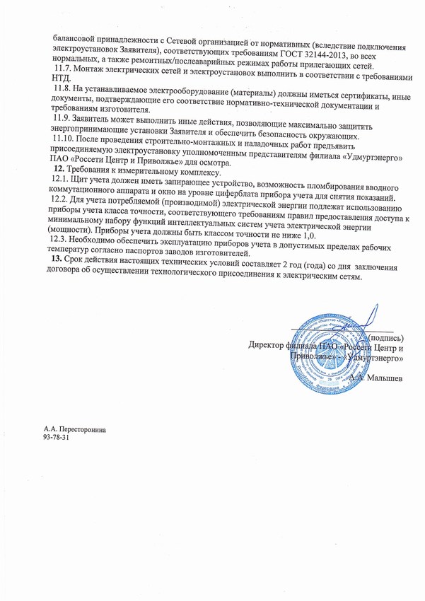 Получены технические условия для присоединения к электрическим сетям